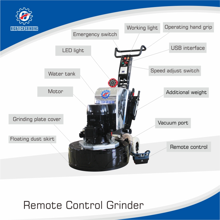高科技遙控混泥土地面研磨機HTG-800-4E設備功率,設計和磨削速度,效率之間取得了特殊的平衡。採用專利的四頭行星技術,使高科技遠程